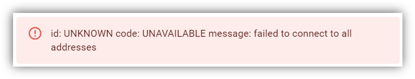 id: UNKNOWN code: UNAVAILABLE message: failed to connect to all addresses